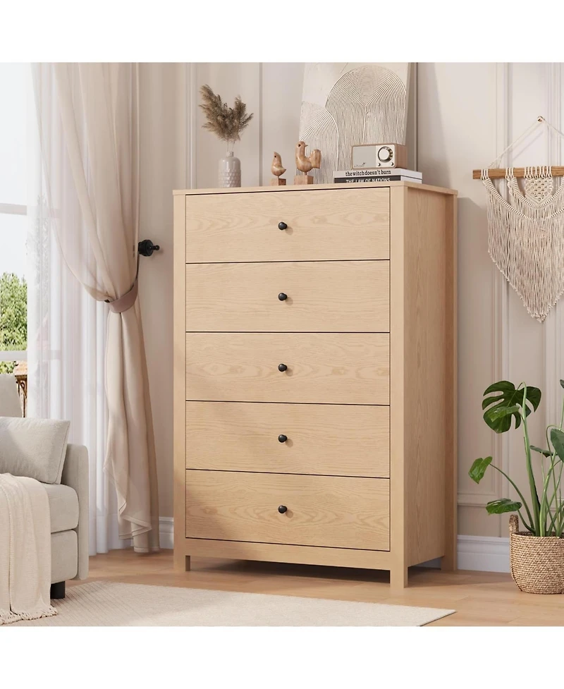 5 Drawer Dresser for Bedroom – Modern Simply Chest of Drawers, Wood Storage Dresser with Deep Drawers for Living Room, Hallway, Entryway, Natural Oak