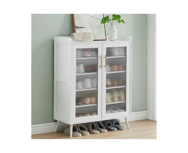 gaomon 5-Tier Entryway Shoe Storage Cabinet with Glass Doors, Shoe Cabinet with Adjustable Shelves, Shoe Storage Organizer for Hallway, Closet, Living
