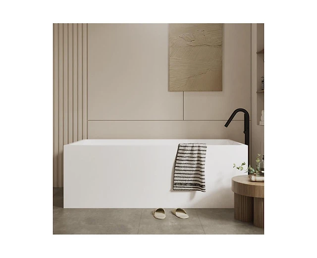 gaomon 59" Acrylic Freestanding Bathtub,Contemporary Rectangular Shape Soaking Tub With Chrome Drain and Minimalist Linear Design Overflow, Easy to In