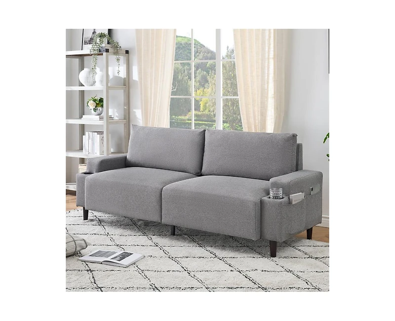 gaomon 80.7" Modern Square Armrest Cushioned Sofa with Storage Bag and Cup Holders, Small Couch Mid Century for Living Room, Apartment Office