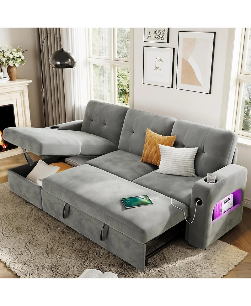 gaomon 84" Sleeper Sofa Bed, L-Shaped Convertible Couch with Storage