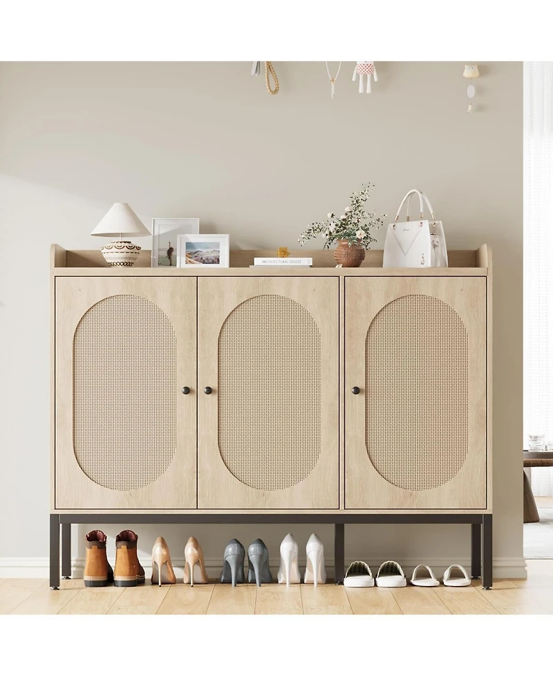 gaomon Freestanding shoe cabinet with 3 rattan doors, adjustable shelves, and 7-tier closed storage for entryway or hallway. in Bloomington, MN