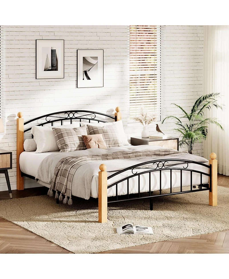 Full Metal Bed Frame with Headboard and Footboard, Classic Platform with Storage, Steel Slats, No Box Spring Needed