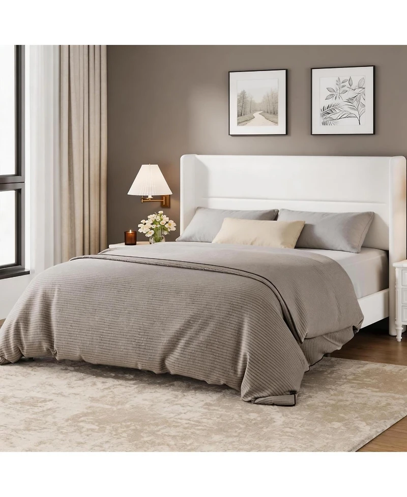 The elegant wingback headboard design adds a touch of luxury to the bedroom. The headboard is made of velvet fabric, which is soft and comfortable