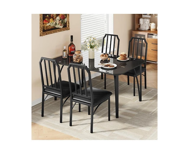 gaomon Glass Dining Table Set for 4, Kitchen Table Chairs Set of 4 with Comfortable Pu Cushion, Dining Room Table Set for 4 with Kitchen Chairs Furnit