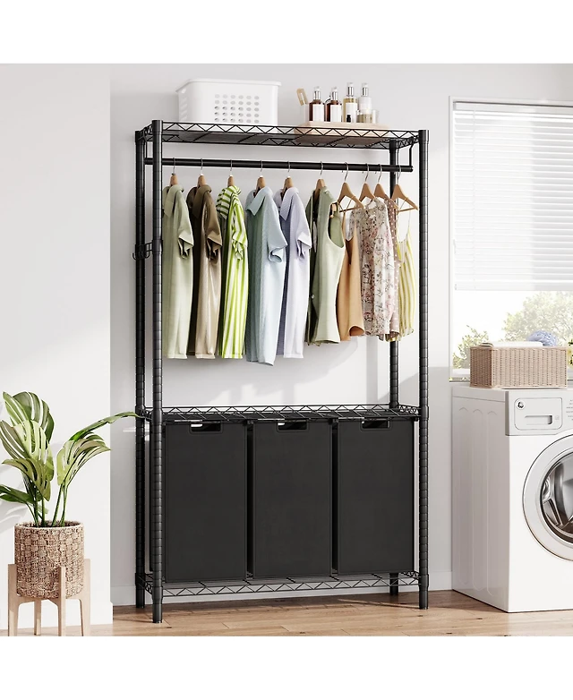 gaomon Heavy Duty Garment Rack, Adjustable Clothes Rack for Hanging Clothes Capacity with Laundry Sorter 3 Section