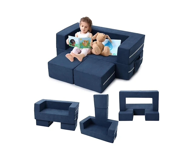 Costway Kids Modular Play Couch Set with Suede Fabric Cover High-Density Foam