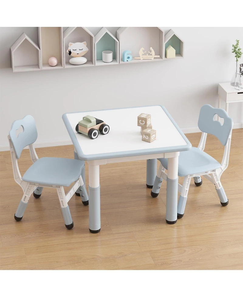 Gaomon Kids Table and 2 Chairs Set, Height Adjustable Toddler Activity Table with Graffiti Desktop for Home, Daycare, Preschool