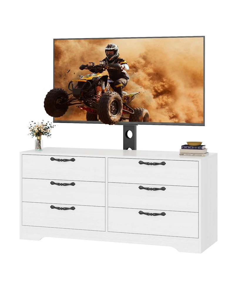 DescriptionRefresh your home with this Tv stand with mount, made to bring storage and display together in one neat piece, The curved shape, rounded edges, and clean white finish create a modern look that works well in the living room, bedroom, or officeFeaturesNine drawers help organize clothing, books, remotes, and daily essentialsAdjustable mount lets you set the screen at a height that suits your room and seating areaStreamlined design helps save space while keeping the area tidy and polishedSpecificationsColor: WhiteStyle: ModernUse: Tv stand, media console, dresser, storage cabinetFit: 32-85 Inch TVsAssembly: Required