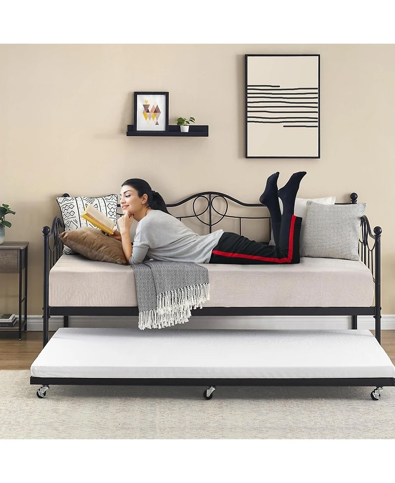 gaomon Modern Twin Daybed with Trundle and Backrest, Metal Sofa Bed Frame with Steel Slat Support and Art Sweet Heart Design,for Living Room in Bloomington, MN