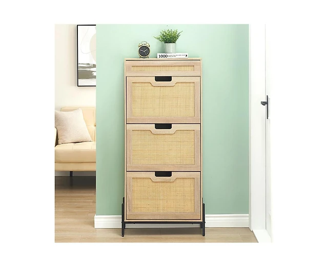 gaomon Natural Rattan 3 Flip Door Shoe Cabinet, Modern Shoe Rack Storage Organizer with Drawer and 3-Tier Adjustable Shelves, Freestanding Shoe Cabine