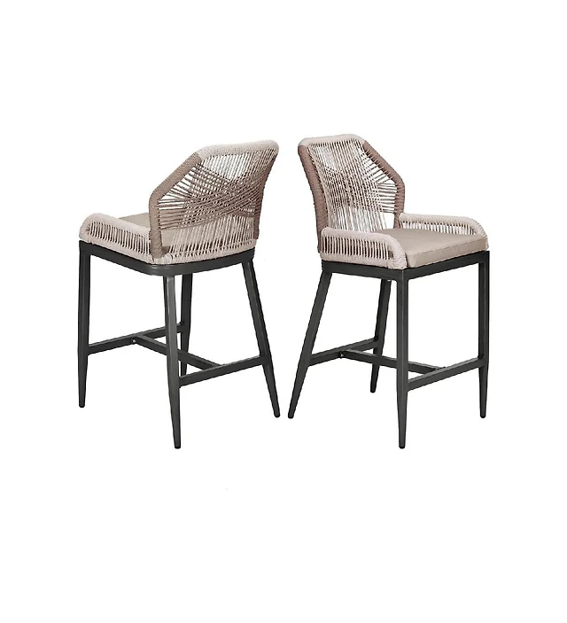 gaomon 2 Pc. Wicker Outdoor Bar Stools with Cushions, 30-Inch Patio Bar Chairs for Garden, Balcony & Deck