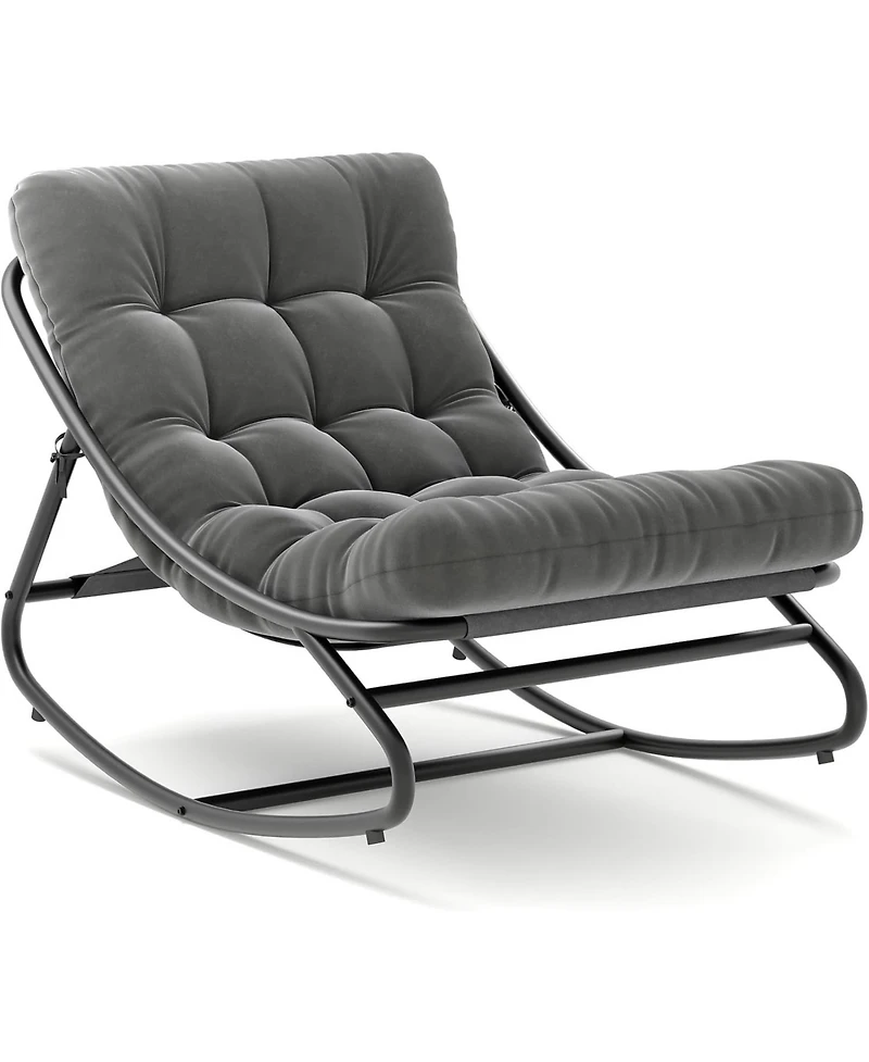 Relax indoors or outdoors with this oversized papasan rocking chair. The e-coated iron egg-shaped recliner with plush cushion supports up to 450 lbs and assembles easily for instant lounging comfort.