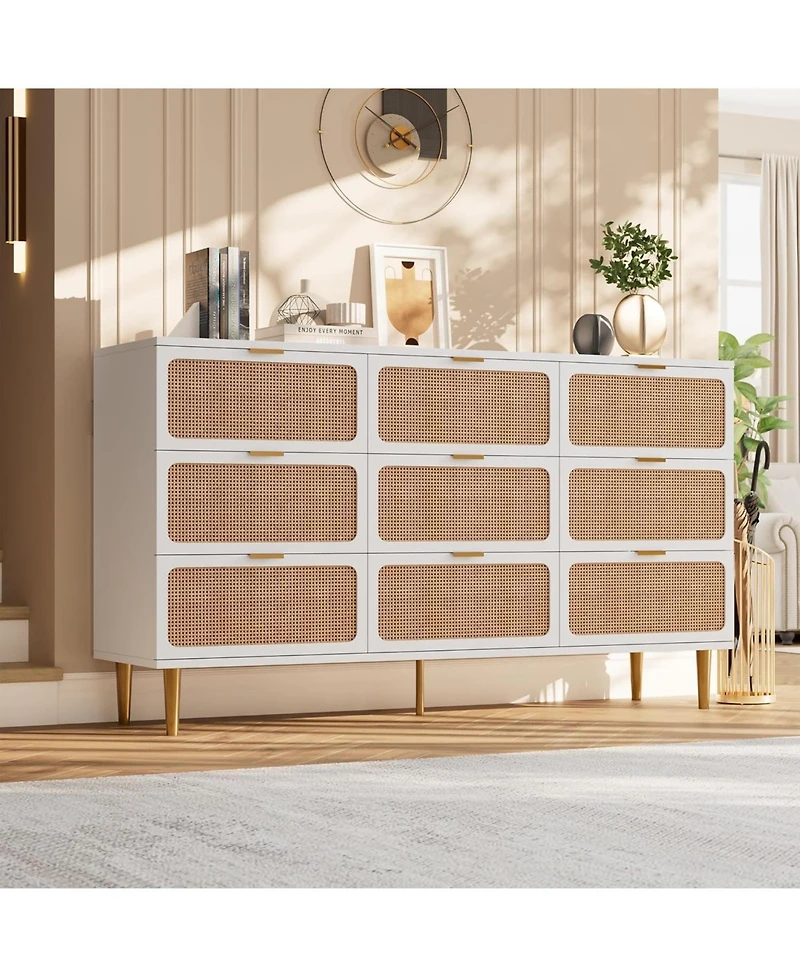 gaomon Rattan 9 Drawer Dresser Tall Modern Closet Deep Storage for Bedroom