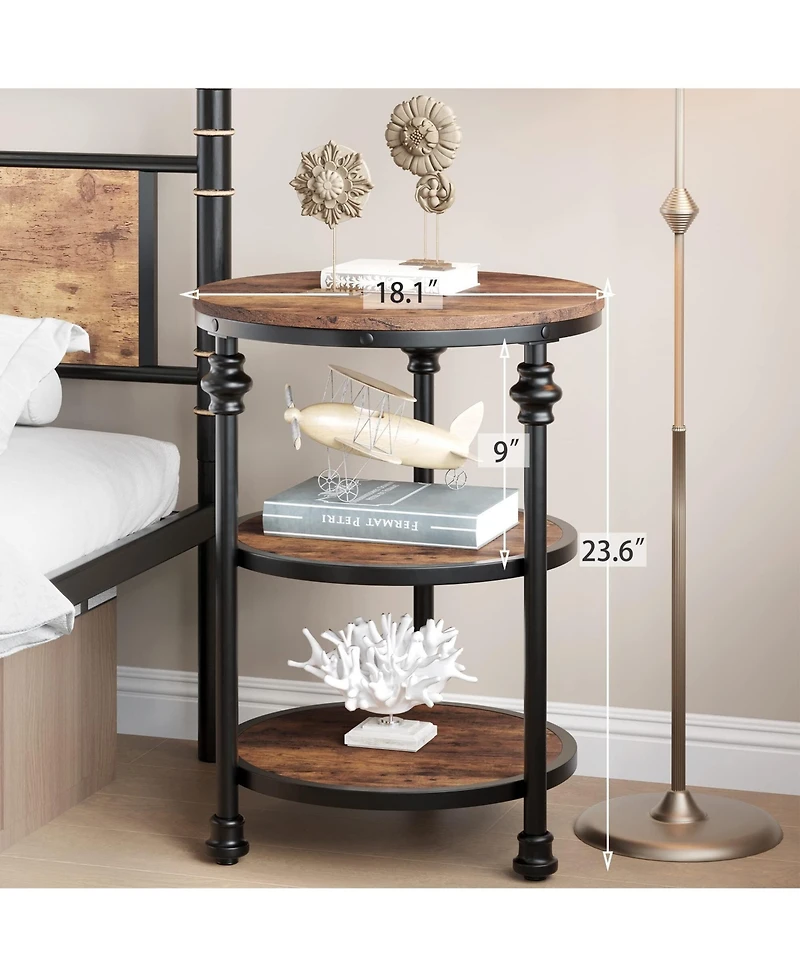 gaomon Round Side Table,Small End Table with 3 Shelves for Living Room,Bedroom