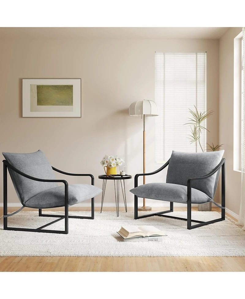 Set of 2 sling accent chairs with removable cushions, designed as lounge chairs for living rooms, bedrooms, or patios easy assembly.