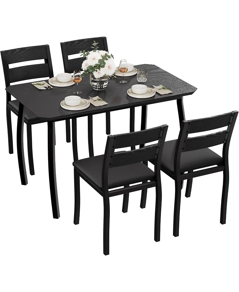 5 Piece Small Dining Set for 4 – Space Saving Kitchen Table with 4 Cushioned Chairs, Ideal for Apartments, Kitchens, and Dining Rooms (Black)