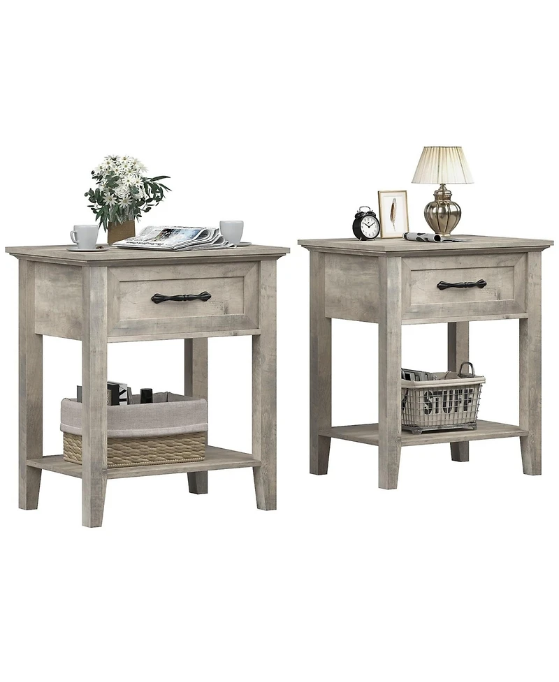 The contemporary gray color complements various decor styles, making it a perfect fit for both modern and traditional interiors.This bedside table adopts a country style and can be matched with the bed or used as a coffee table. The desktop can hold table lamps, books, alarm clocks, etc. The drawer has a large capacity and can store some personal items. The lower open shelf can be used to store storage bags or books of interest to facilitate reading, making your room tidier.Very suitable for use as a bedside table or side table, it can add versatility to any room, whether it is your bedroom, living room, or guest room, study, where you can drink coffee, read books, or chat with friends and enjoy life during your rest time. Flowers can be placed on the table to add a stylish atmosphere to your room and bring you a happy mood.