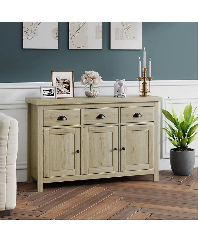 gaomon Storage Cabinet, Sideboard, Buffet Doors Wood Sideboard with 3 Drawers, Farmhouse Coffee Bar Cabinet