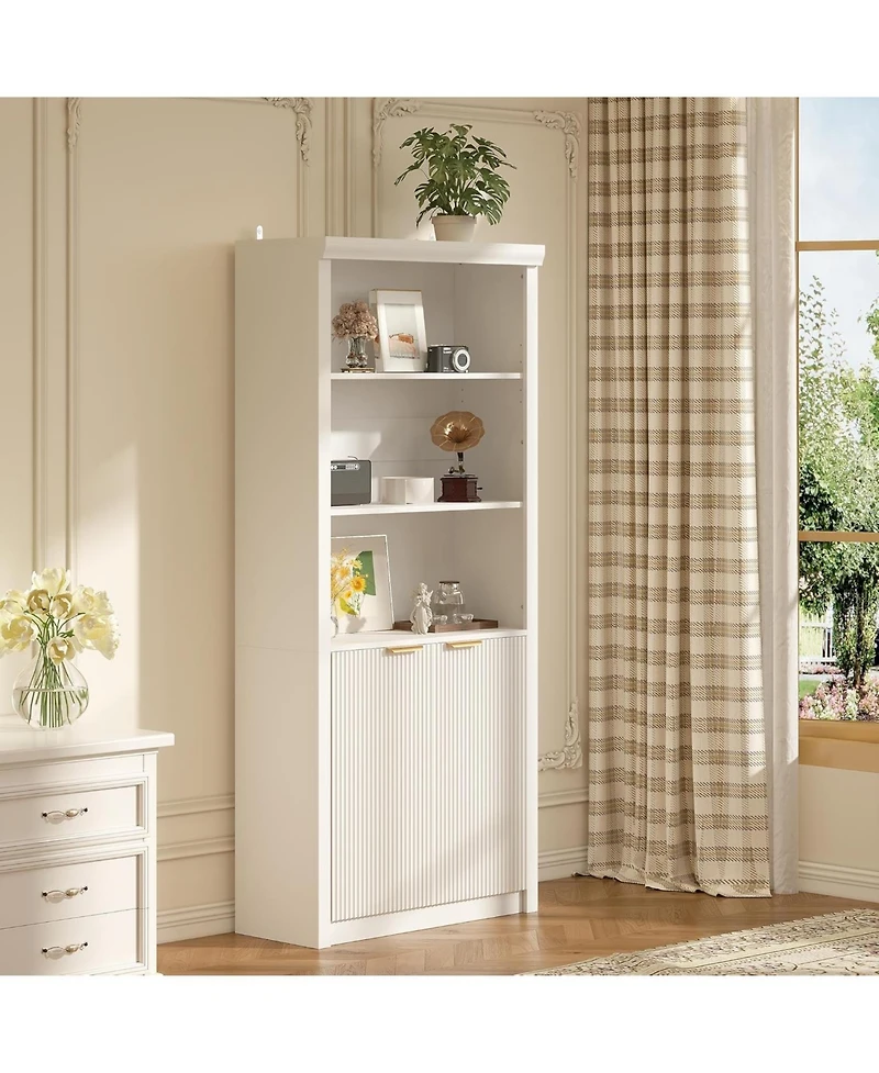 gaomon 71" Tall 5-Shelf Wooden Bookcase with Doors, 31.5" Wide Farmhouse Book Shelf, Adjustable Top Shelf