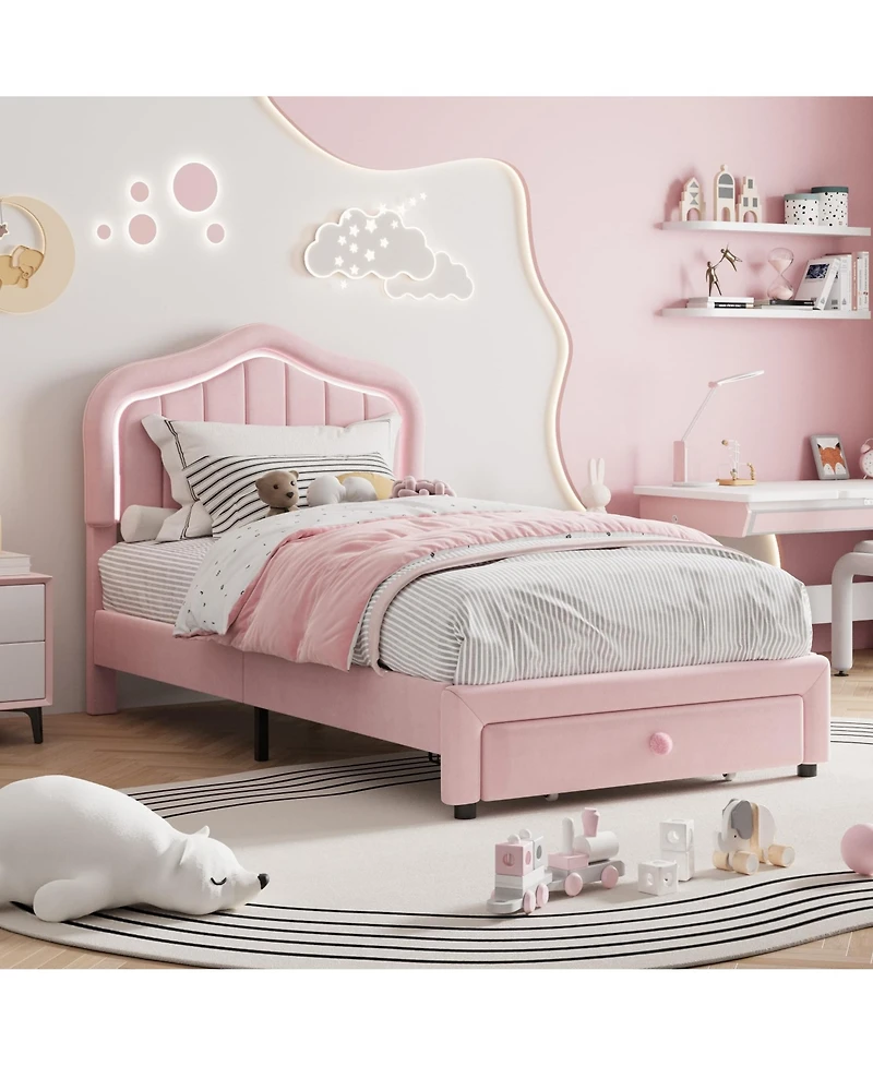 gaomon Twin Upholstered Bed Frame with Storage Drawer and Smart Led Headboard, Twin Size Platform Bed Frames for Kids