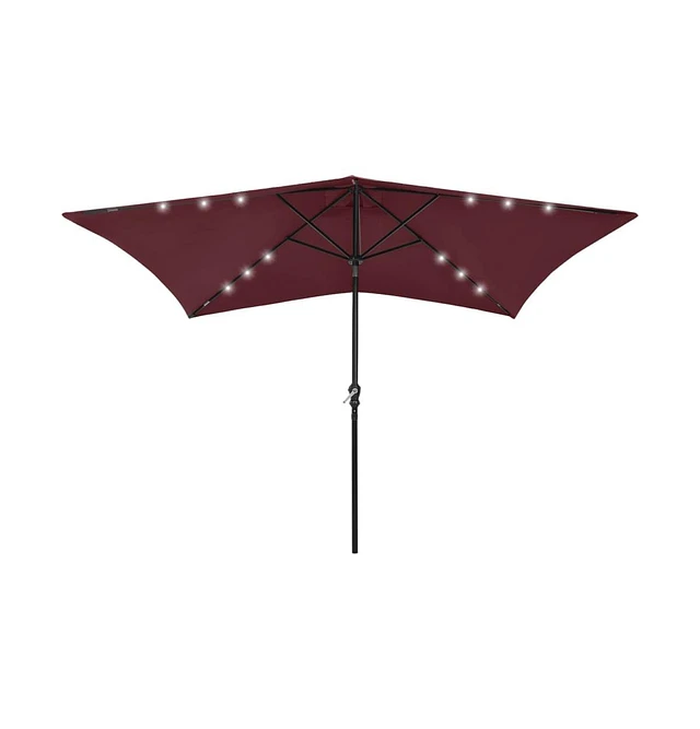 Garden Parasol with LEDs and Steel Pole Bordeaux Red 6.6'x9.8'