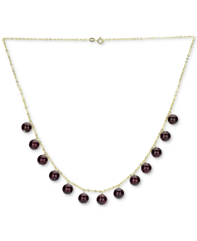 Garnet Bead Dangle 18" Statement Necklace 14k Gold (Also Malachite, Onyx, Rose Quartz, Lapis Lazuli, Jade, & Turquoise)