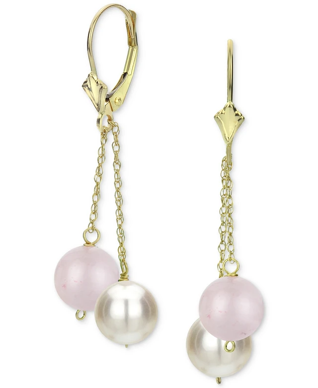 Garnet & Cultured Freshwater Pearl (8mm) Chain Drop Earrings in 14k Gold (Also in Jade, Tiger Eye, Lapis Lazuli, Rose Quartz, Turquoise, Onyx, & Malac