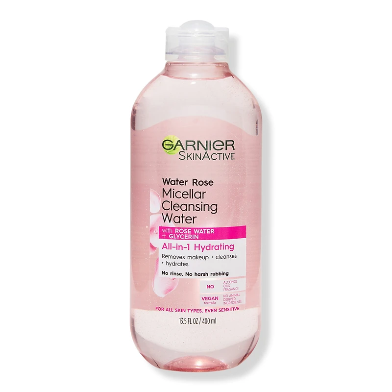 SKINACTIVE MICELLAR W/ ROSE WATER 13.5OZ. Benefits: Water Rose Micellar Cleansing Water cleanses, removes makeup and hydrates skin all-in-1. Micellar lifts away dirt, oil and makeup without harsh rubbing leaving skin clean and hydrated. Micellar water is paraben free, fragrance free, sulfate free. No-rinse makeup remover cleanses and hydrates skin. Formulated Without: Alcohol. Fragrance. Oils. Parabens. Sulfates. :