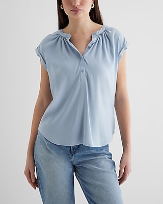 - Gathered neck; Half button up