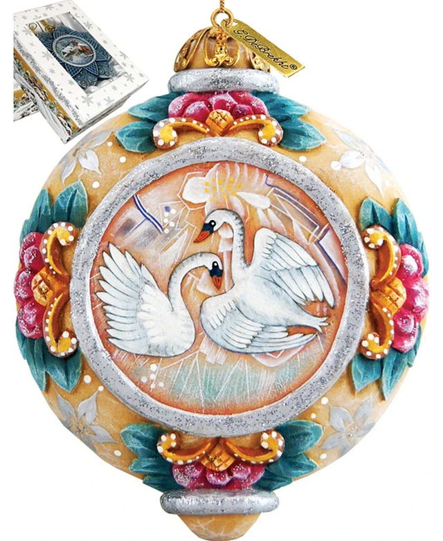 G.DeBrekht Hand Painted Scenic Ornament Swans Ornament