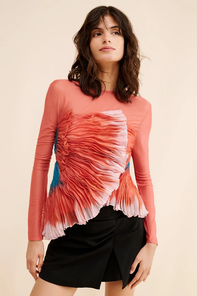 By Anthropologie 3D Floral Short-Sleeve Crew-Neck Sweater