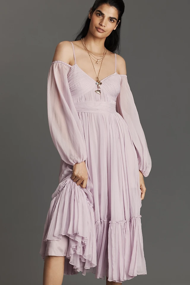 Sundays Meline Puff-Sleeve Off-The-Shoulder Midi Dress