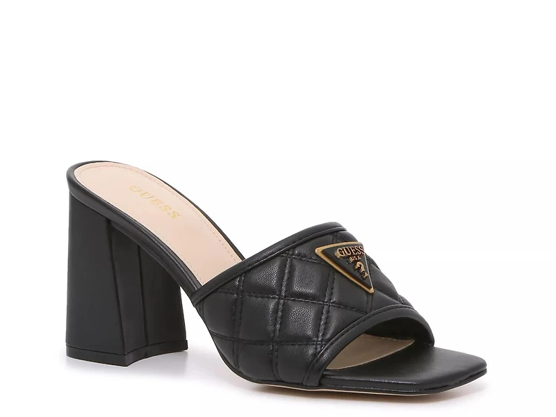 Elevate a look with the classically designed Gelina sandal from Guess. The mule-inspired silhouette, quilted upper and signature metallic emblem lend lasting style to your collection.