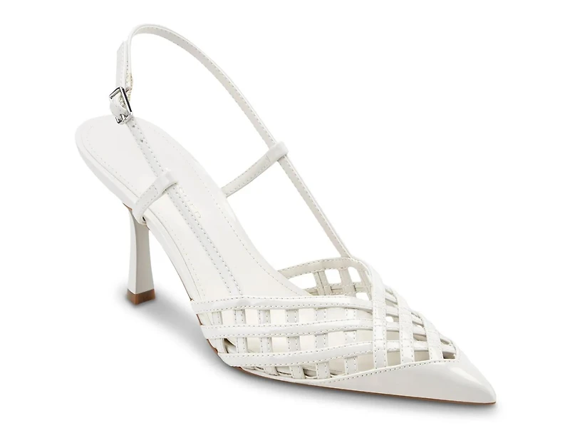 The Gen pump from Marc Fisher offers a fashion-forward silhouette with its pointed toe and sleek cutout detailing on the upper, bringing a modern edge to your wardrobe. Designed with an adjustable slingback strap and a sleek heel, this pump effortlessly transitions from office meetings to evening plans, making it a versatile choice.