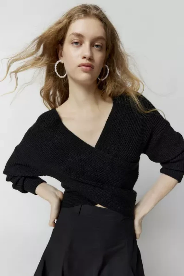 John Galt Black Wrap Sweater Top