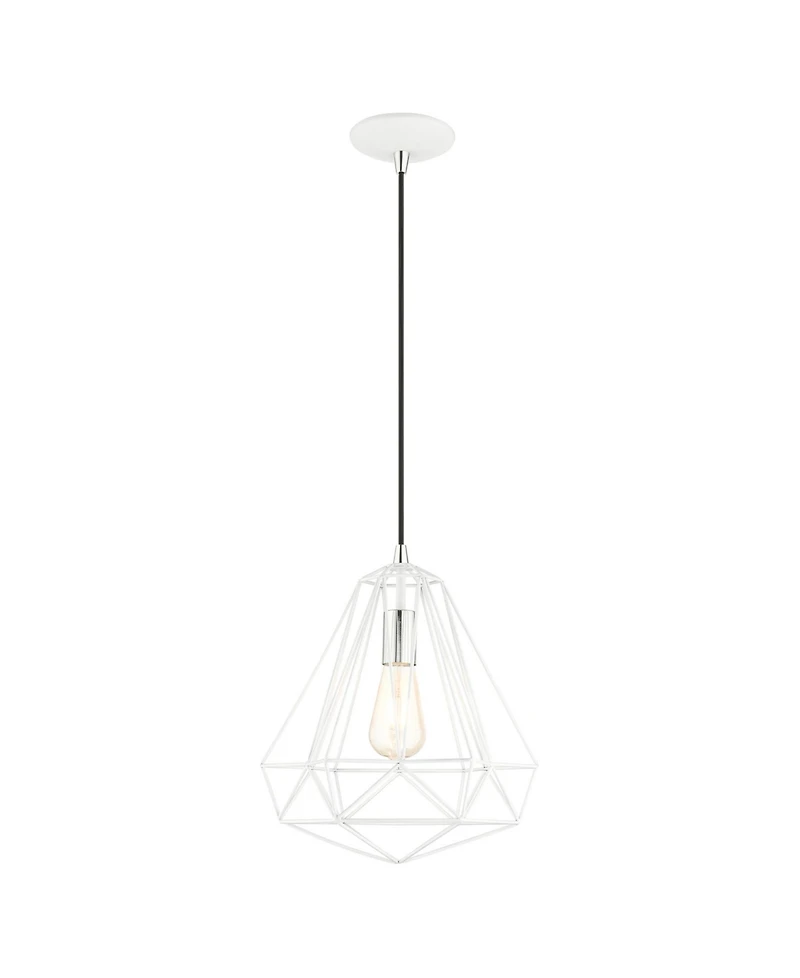 The Geometric collection showcases an angular frame set in a contemporary ambiance for a perfect accenting look. This single light pendant suspends simply, and it's great solo over focus points or set in pairs or trios over long counter tops and islands.