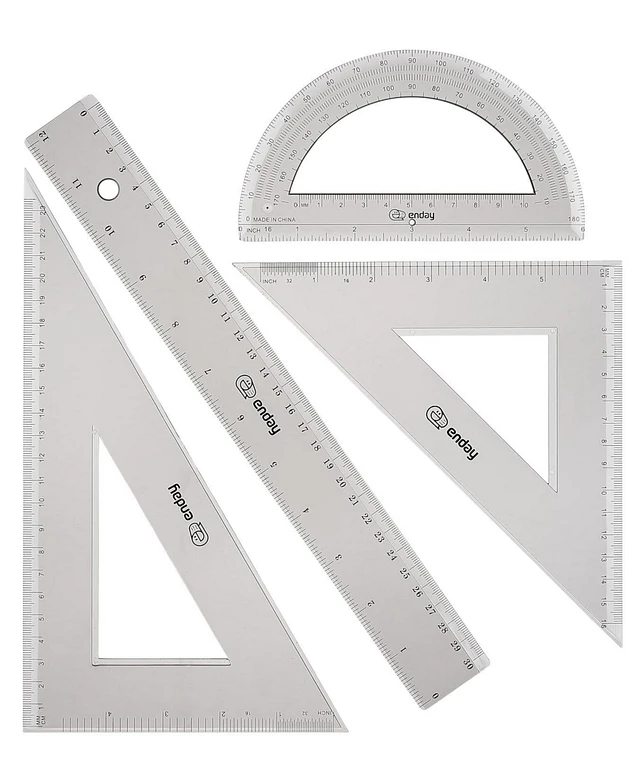 Geometry Plastic Ruler Set, Clear 12 inch/ 30 cm Straight Ruler, Triangle Rulers, Protractor Ruler Tool Set, Transparent School and Office Supplies Ma