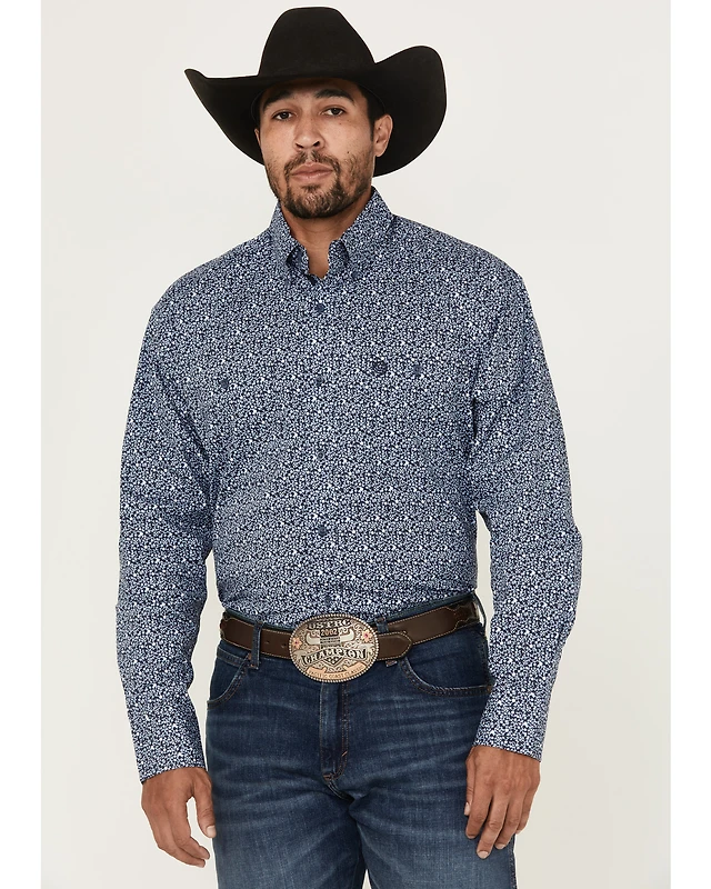 George Strait by Wrangler Men's Floral Print Long Sleeve Button-Down Stretch Western Shirt
