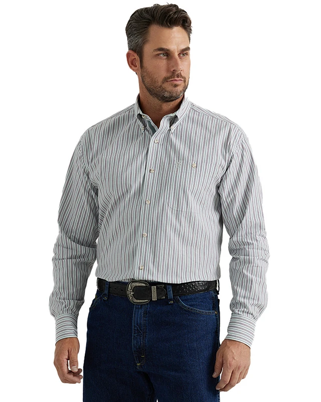 George Strait by Wrangler Men's Striped Long Sleeve Button-Down Stretch Western Shirt