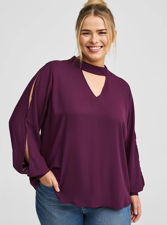 Georgette Keyhole Long Sleeve Blouse