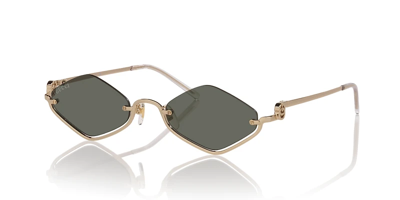 Elevate your style with the Gucci Gg1604S sunglasses, featuring irregular rimless frames for a bold and modern look. Crafted with lightweight gold-toned metal, these gold sunglasses seamlessly combine sophistication with simplicity. Grey classic lenses provide 100% UVA/UVB protection, making them both stylish and functional.