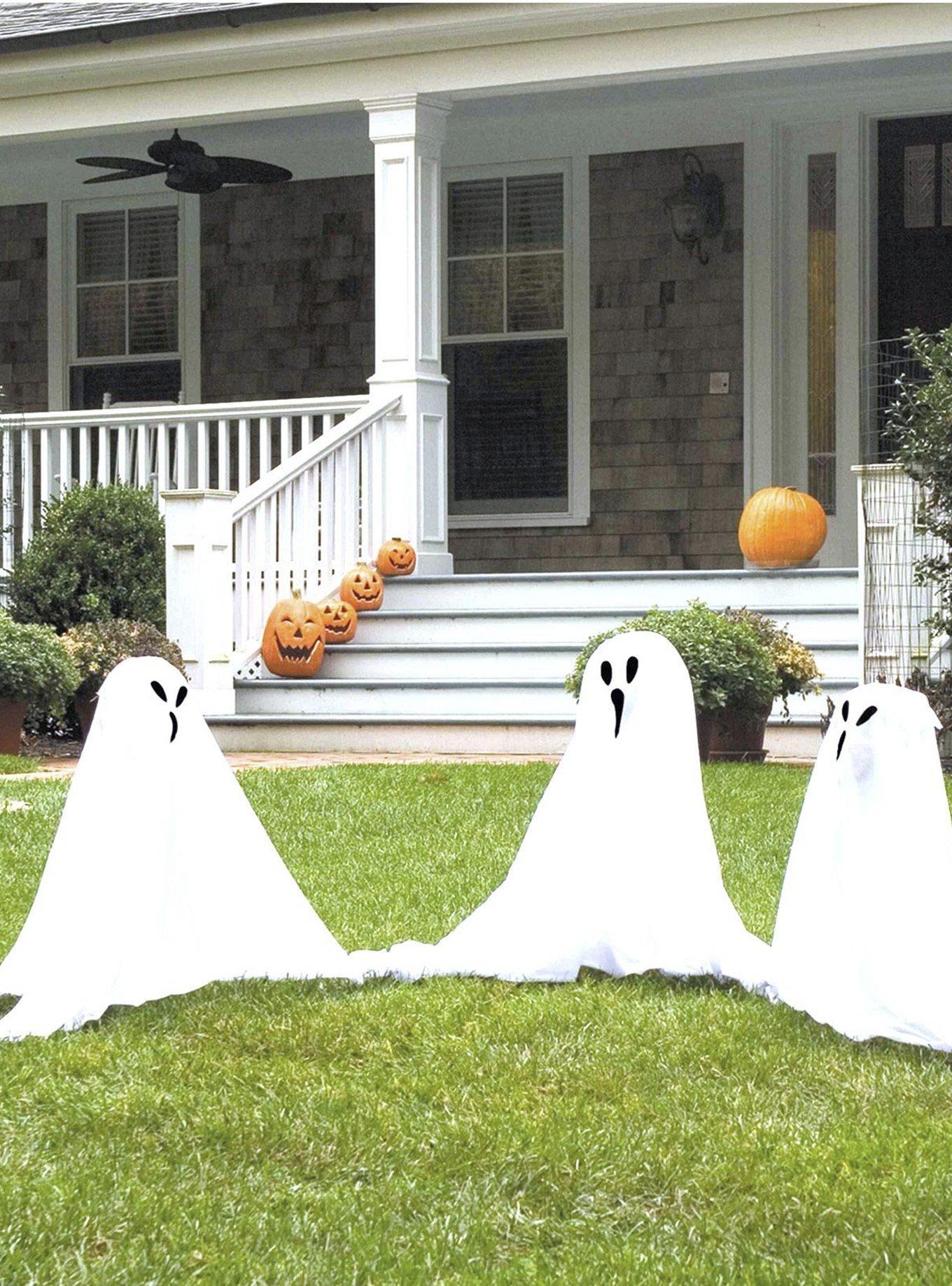How many ghosts does it take to prove you're into the Halloween spirit. The Group of Spooky Ghost Lawn Props is a great decoration that will show you really care about Halloween. These three ghosts are covered by white sheets and have hole faces cut into them. When sitting in your yard, these are a dead giveaway that your house is haunted. Peak the interest of the neighborhood when they see these ghosts always in front of your house this Halloween season. Item cannot be shipped to P.O. Boxes