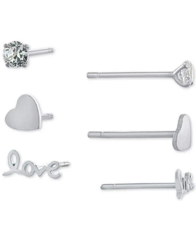 Giani Bernini 3-Pc. Set Cubic Zirconia & Love-Themed Stud Earrings in Sterling Silver, Created for Macy's