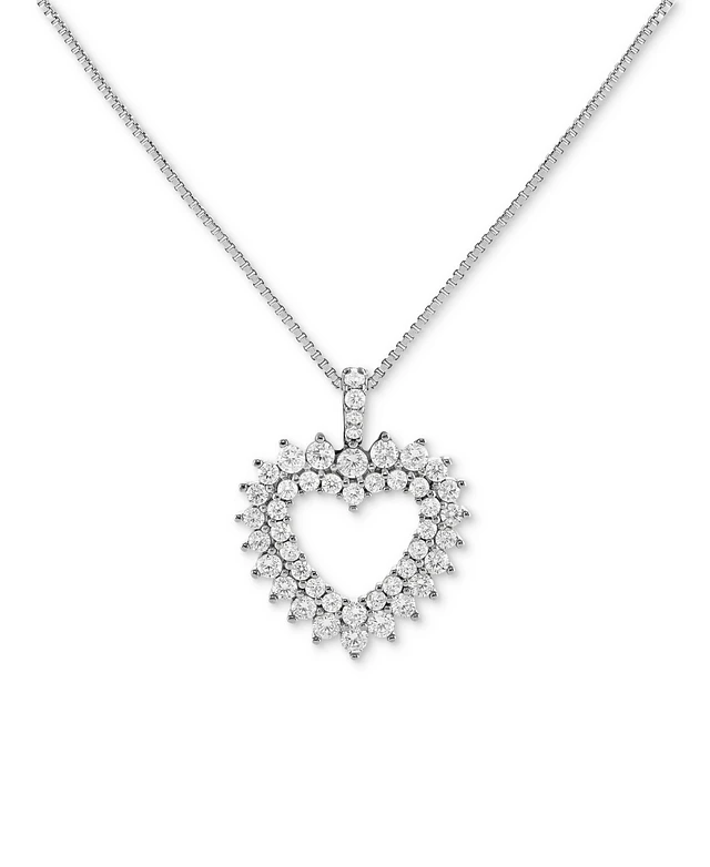 Giani Bernini Cubic Zirconia Open Heart Pendant Necklace in Sterling Silver, 16" + 2" extender, Created for Macy's