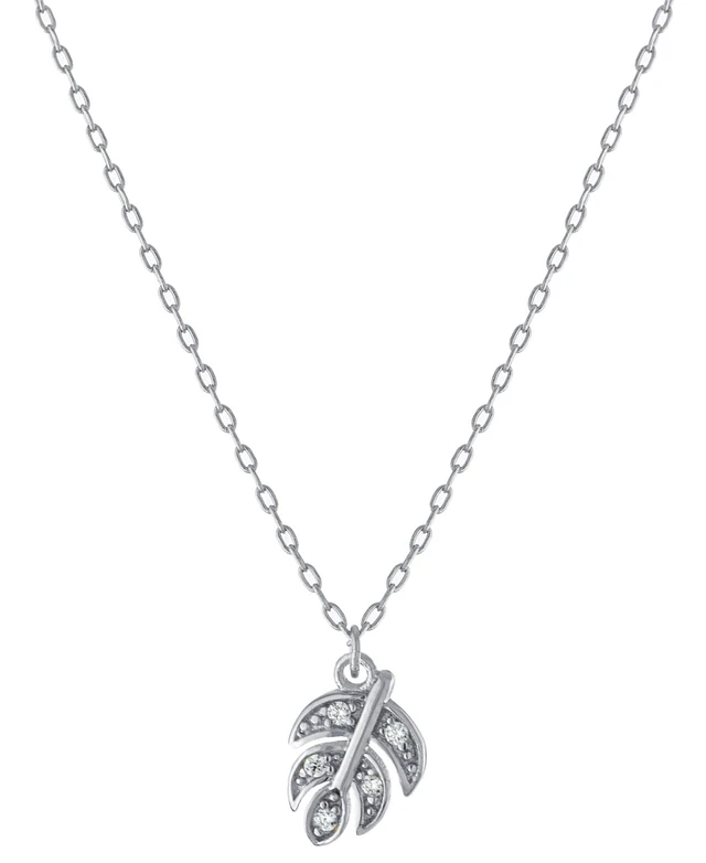 Giani Bernini Cubic Zirconia Leaf Pendant Necklace in Sterling Silver, 16" + 2" extender, Created for Macy's