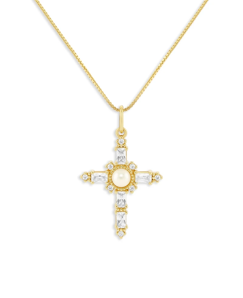 This Giani Bernini cross features sparkling cubic zirconia and a luminous imitation pearl.