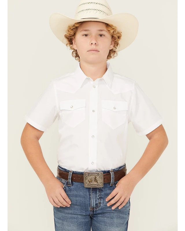 Gibson Trading Co Boys' Solid Short Sleeve Pearl Snap Western Shirt