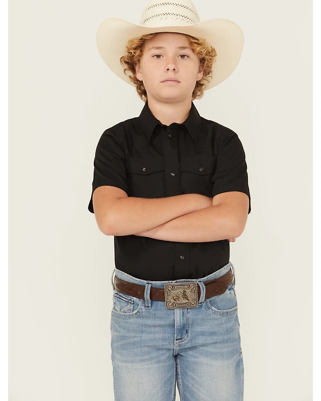 Gibson Trading Co Boys' Solid Short Sleeve Pearl Snap Western Shirt