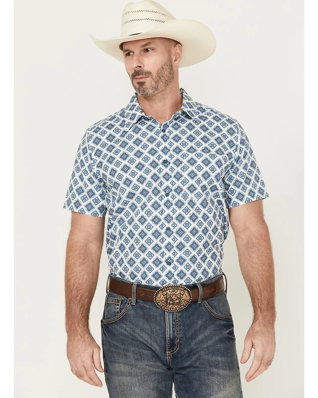 Gibson Trading Co Men's Pool Shark Geo Print Short Sleeve Button-Down Stretch Western Shirt